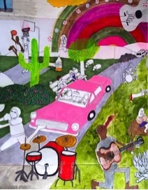 Tim Cohen’s paintings are symmetrical yet non linear narratives in swaths of bold, bright color. Also on display are his newest works, surreal collages of his own drawings, replete with tiny multiple points of interest. A self-taught musician and visual artist, Tim composes visual works earmarked by spontaneity and a “first thought, best thought” philosophy. Also present are his life-long obsessions with sports and music, and the hazy gray-scale memories of the Pop culture of his youth. Cohen approaches each new piece as an opportunity to expound upon simple, melodic ideas. These works further explore the relationship between the permanent and the fleeting through the use of ink washes.